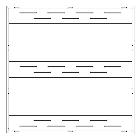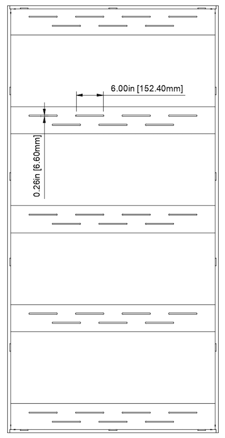 - Position the panel frame on the wall. Use a level to ensure the panel is straight and mark the location of the mounting holes on the wall. The back of the panel frame has 3 (HA-44W) or 5 (HA-84W) mounting strips that provide continuous slots allowing a minimum of 2 fasteners per mounting strip. Mark these locations as appropriate.